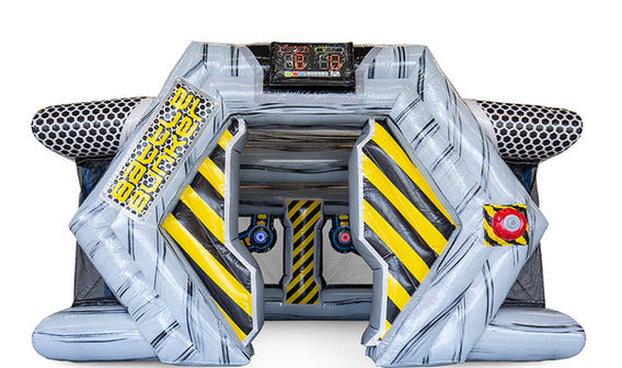 Arène gonflable équipée de 10 cibles lumineuses interactives. Soyez réactif et touchez les cibles de la couleur de votre équipe ! La cible touchée s'éteind et une autre s'allume de manière aléatoire. Vous ne pouvez pas avoir une visibilité sur toutes les cibles à la fois, vous allez donc devoir courir dans tous les sens pour tenter d’attraper le plus de cible possible. Le score de chaque équipe s'affiche sur l'écran de la valise intéractive placée à l'entrée.